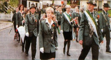 Vorneweg, wie in den Vorjahren. eine Equipe des Reitervereins Mackenrode, dahinter ein geschmückter Personenkraftwagen mit einigen Seniorenschützen. Der Spielmannszug der Freiwilligen Feuerwehr Steina mit Markus Winter als Stabführer, die Blaskapelle der Schützenvereinigung Steina mit Margit Ronge an der Spitze und der Schalmeien-Spielmannszug Osterhagen wechselten in bunter Folge mit Abordnungen befreundeter Schützenvereine sowie mit starken Vertretungen örtlicher Vereine und Verbände.