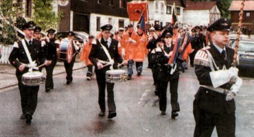 Vorneweg, wie in den Vorjahren. eine Equipe des Reitervereins Mackenrode, dahinter ein geschmückter Personenkraftwagen mit einigen Seniorenschützen. Der Spielmannszug der Freiwilligen Feuerwehr Steina mit Markus Winter als Stabführer, die Blaskapelle der Schützenvereinigung Steina mit Margit Ronge an der Spitze und der Schalmeien-Spielmannszug Osterhagen wechselten in bunter Folge mit Abordnungen befreundeter Schützenvereine sowie mit starken Vertretungen örtlicher Vereine und Verbände.